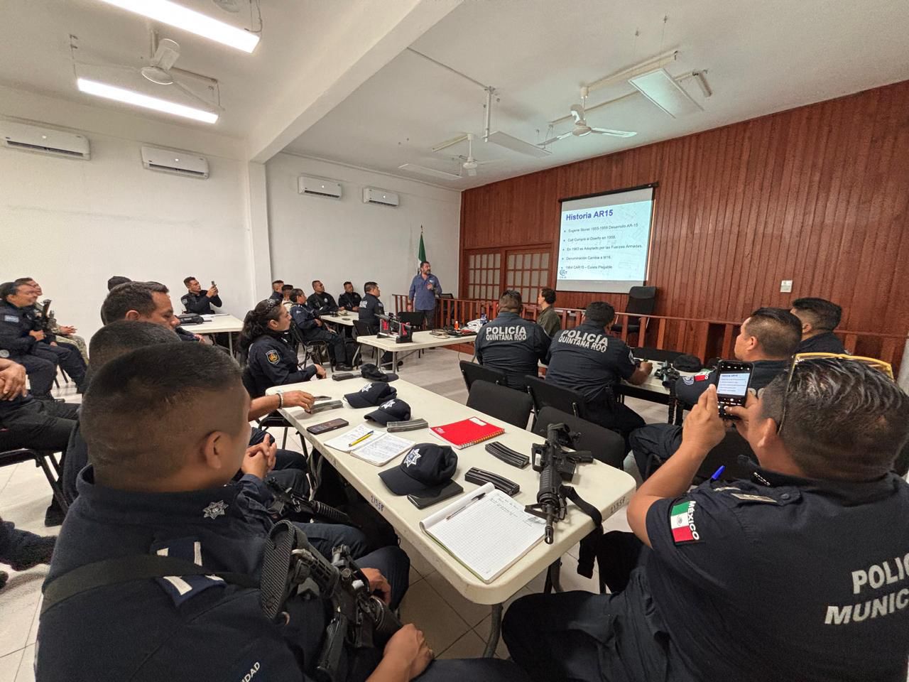 Durante dos jornadas, el 3 y 4 de abril, en horario de 8:00 a 14:00 horas, 29 elementos de los municipios de Playa del Carmen, Cozumel, Isla Mujeres, Puerto Morelos y Benito Juárez recibieron capacitación especializada con el acompañamiento de dos representantes de la empresa Colt.